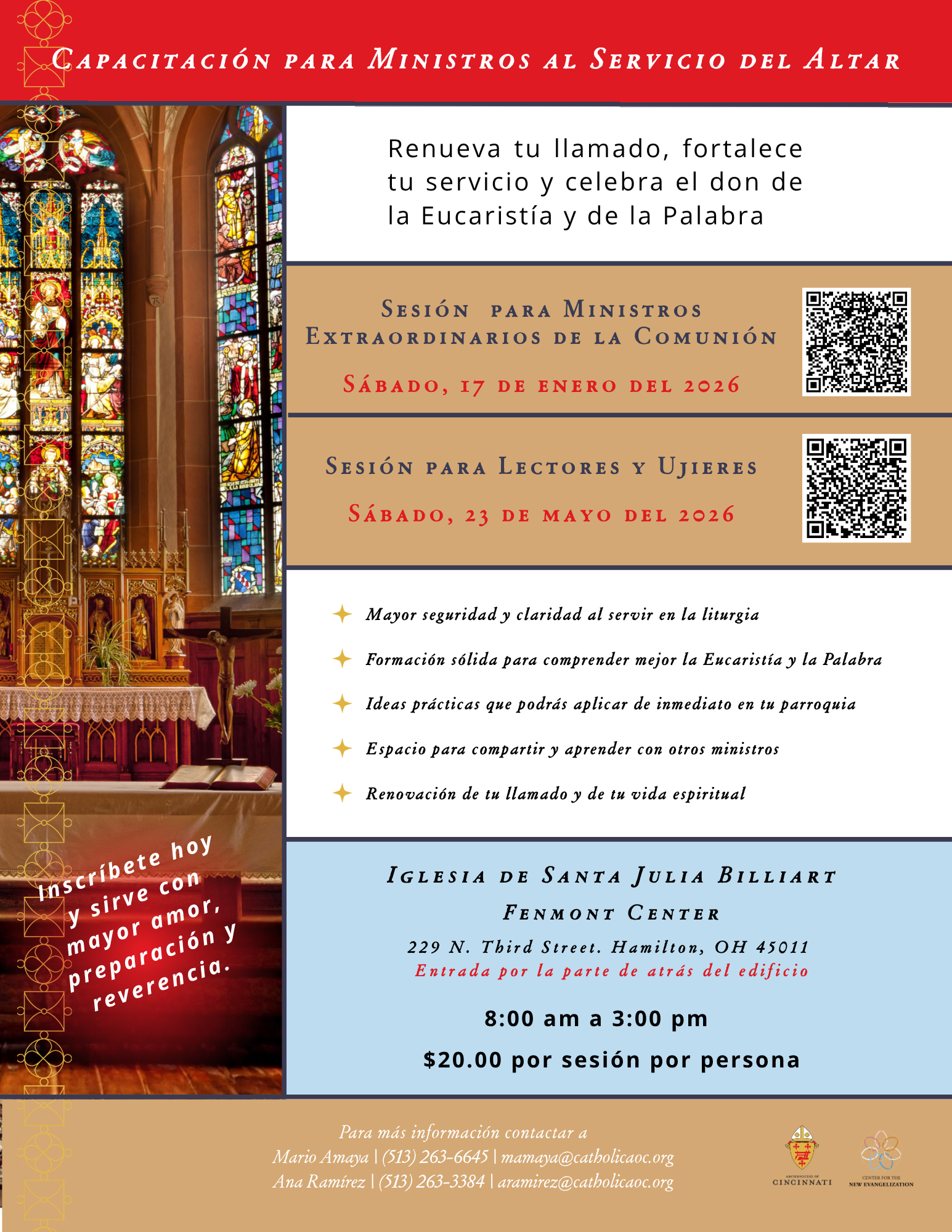 Únete a nuestro Taller de Capacitación para Lectores, un espacio de formación integral diseñado para profundizar en el estudio, la oración y la proclamación de la Palabra de Dios. Este taller te preparará para proclamar con reverencia y confianza las Escrituras durante las liturgias, fortaleciendo tu compromiso espiritual y pastoral. A través de sesiones prácticas y formativas, aprenderás habilidades de comunicación, meditación y el correcto uso del leccionario, contribuyendo así a la vida viva y evangelizadora de nuestra comunidad eclesial.
